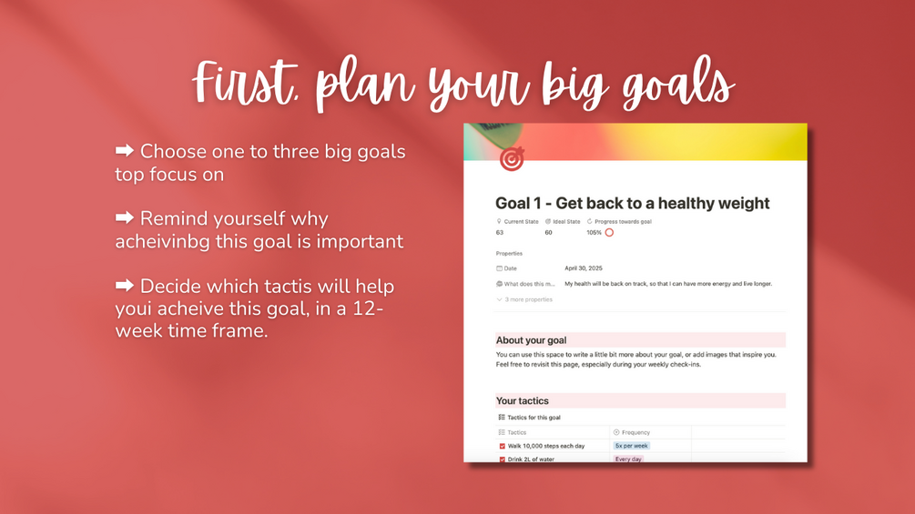 Get started today with this easy-to-use Notion template and feel the difference in just 12 weeks!