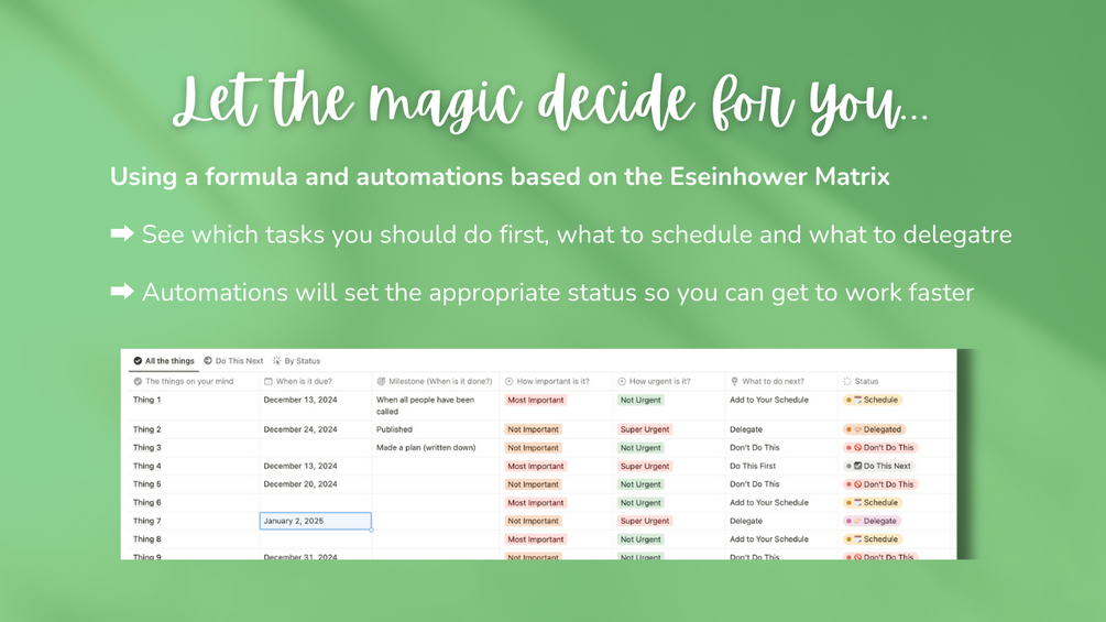 3) Let the Notion formula and pre-set automations tell you what to do next.
