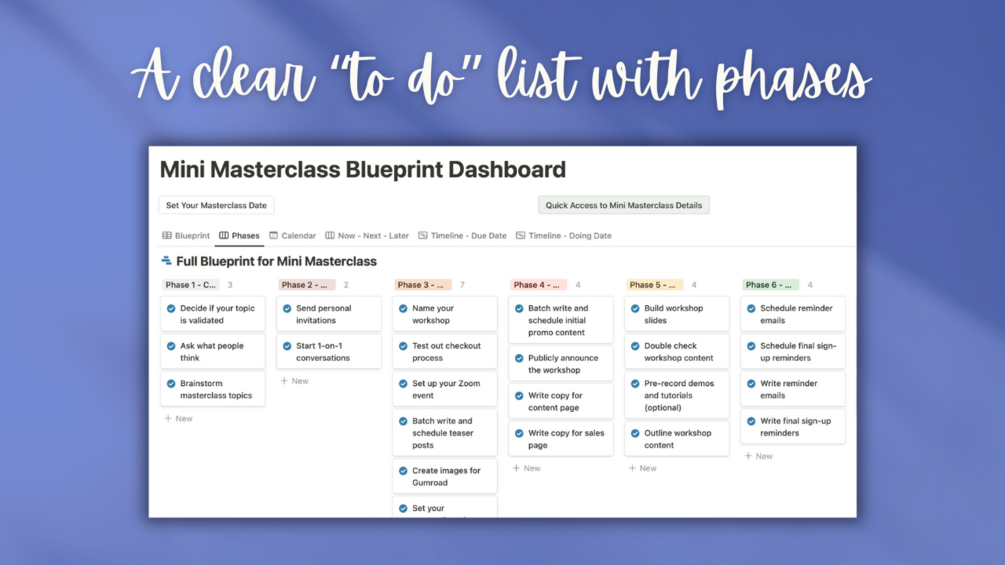 The tasks and templates included in the Mini Masterclass Blueprint will support you with: