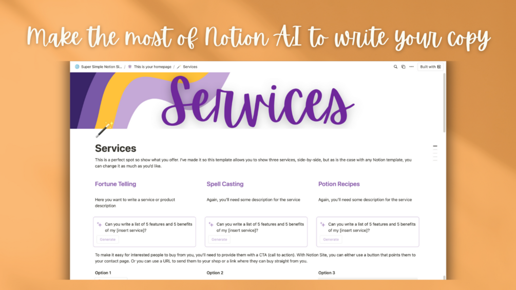 - Access to Canva header files that you can customise for your Notion site.